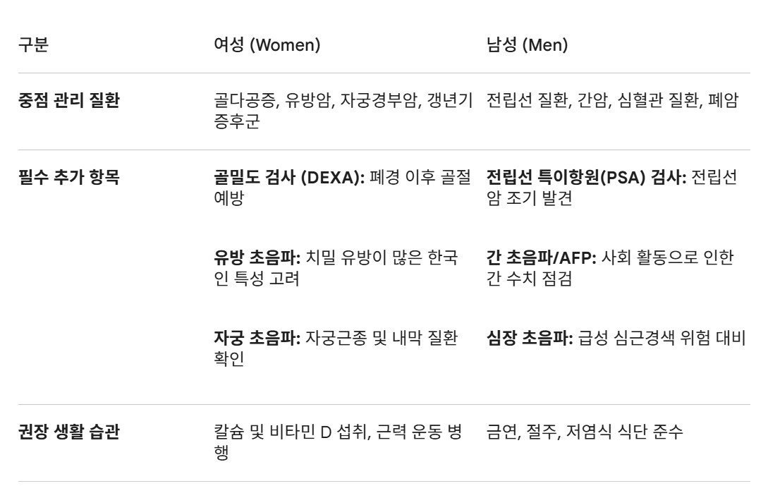 국가 검진 외에도 가족력이나 평소 생활 습관에 따라 추가 검진을 고려해야 합니다.